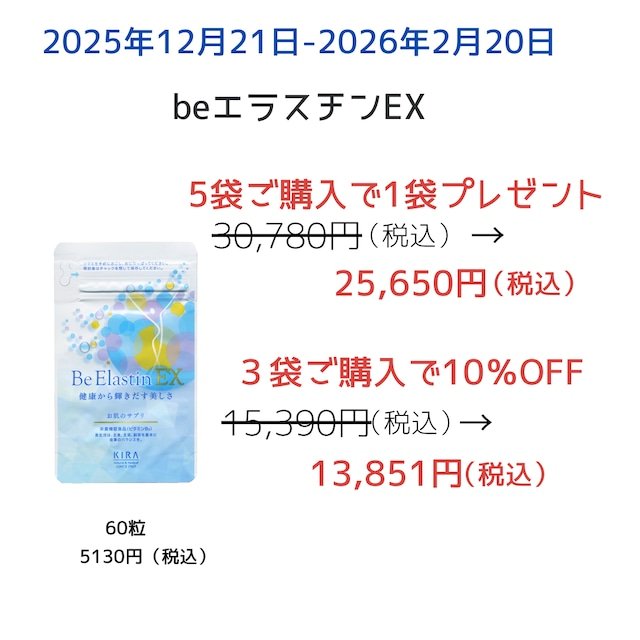 お肌のサプリ 飲む美容液『BeエラスチンEX』キャンペーン